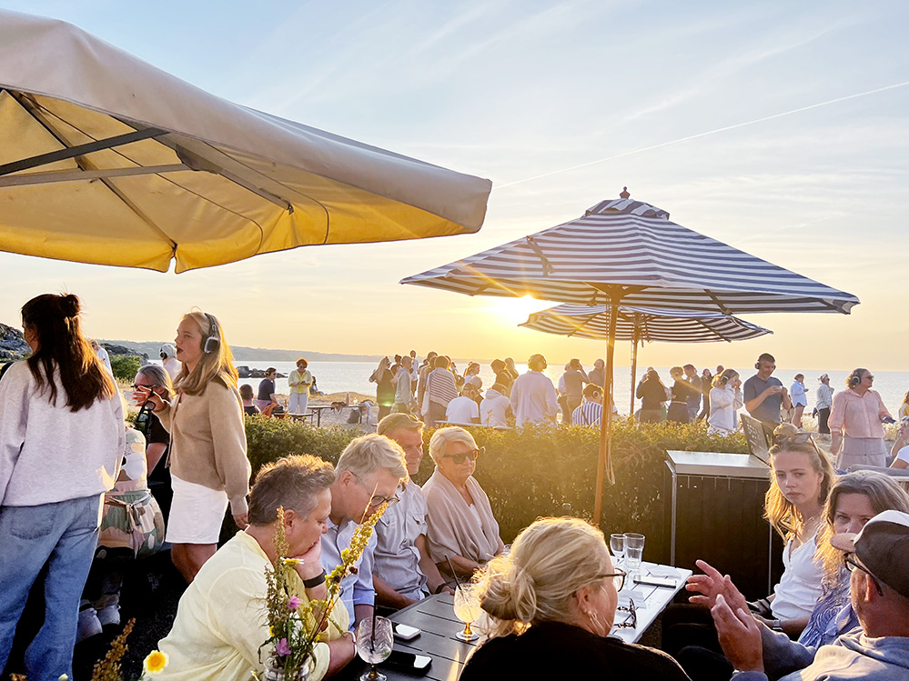 Husets venner er DJs, og der bliver spillet glad dansemusik på tre kanaler. Headsets lejes i baren og vores gæster tager børn og bedsteforældre under armen og danser tæt ved vandet i solnedgangen. Vi lover garanti for godt humør.